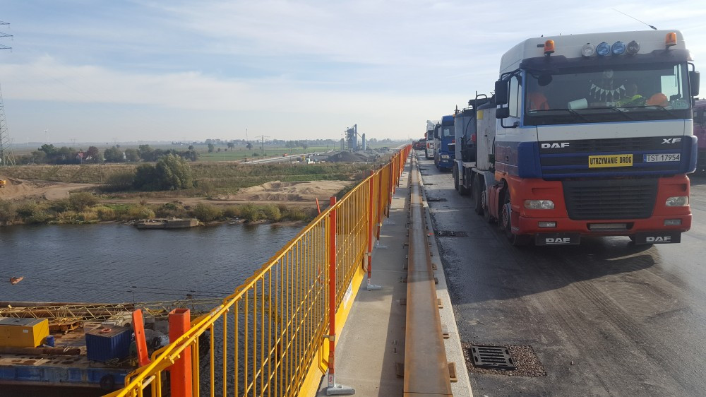 Most w Kiezmarku to największy obiekt mostowy tego kontraktu. Na początku października br. kładziono na nim warstwę ścieralną asfaltu lanego, do produkcji którego wykorzystano asfalt modyfikowany MODBIT spółki LOTOS Asfalt.